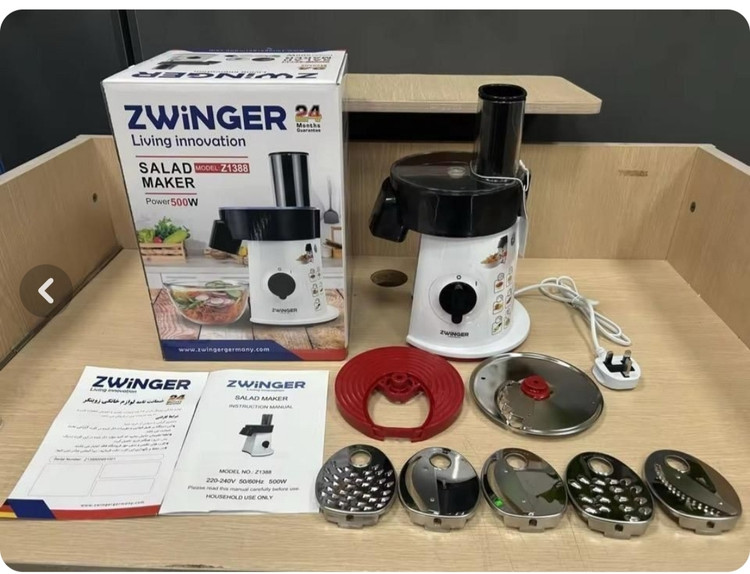 دارای 5عدد تیغه خردکن برای نگینی سالاد زدن حلقه زن کالباسی زن و خلالی