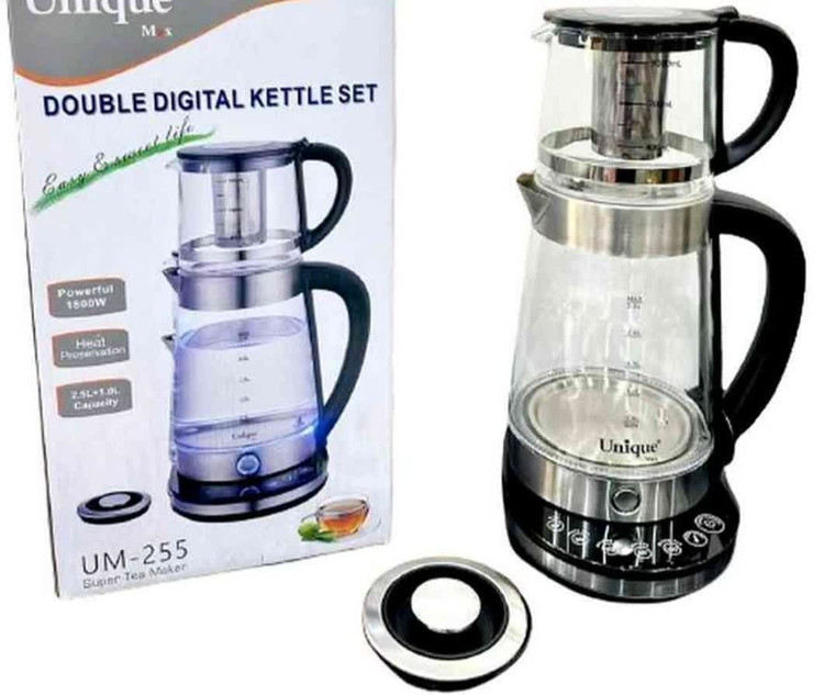 چایساز روهمی یونیک مارک فوق العاده از نظر کیفیت و بسیار با دوام دارای المنت بسیار قویی 1800 وات حجم کتری 2.5 لیتر و حجم قوری 1.5 لیتر دارای دیجیتال تنظیم حرارت همچنین دارای گرم کن اتوماتیک نیز هست و در داخل کتری نورپردازی زیبا نیز است